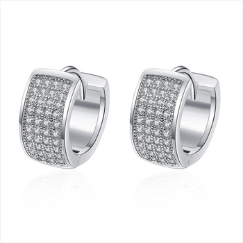 Vente en gros de boucles d'oreilles pour femmes à la mode, plusieurs rangées de zircon rond plaqué rhodium, cadeau design
