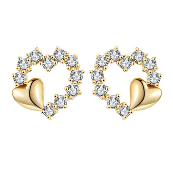 女性用ハート型キュービックジルコンスタッドイヤリングゴールドトーンミニマリスト女性用上品なデイリーウェアジュエリー