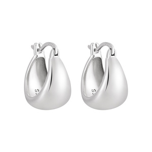 新しい個性の高度なミニマリストスタイルの不規則な滑らかなラウンドダイヤモンドS925スターリングシルバーイヤリング