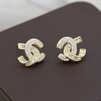 新品ダブルC耳スタッドシニアセンスライトラグジュアリーオールマッチングジルコンイヤリング女性ホットセール